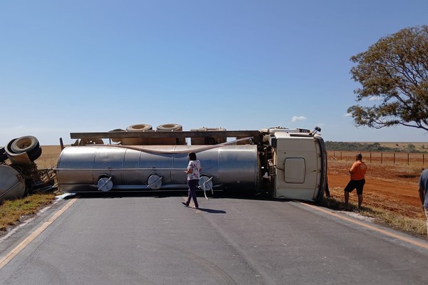 Motorista perde o controle após ser ofuscado por farol e capota na MG410, em Presidente Olegário