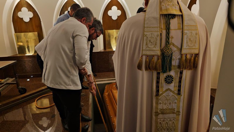 Após a missa, o cortejo desceu em procissão até a cripta, onde os restos mortais foram depositados. Logo em seguida, o bispo diocesano, Dom Claudio Nori Sturm procedeu a benção e inauguração oficial da restauração da Cripta Diocesana.