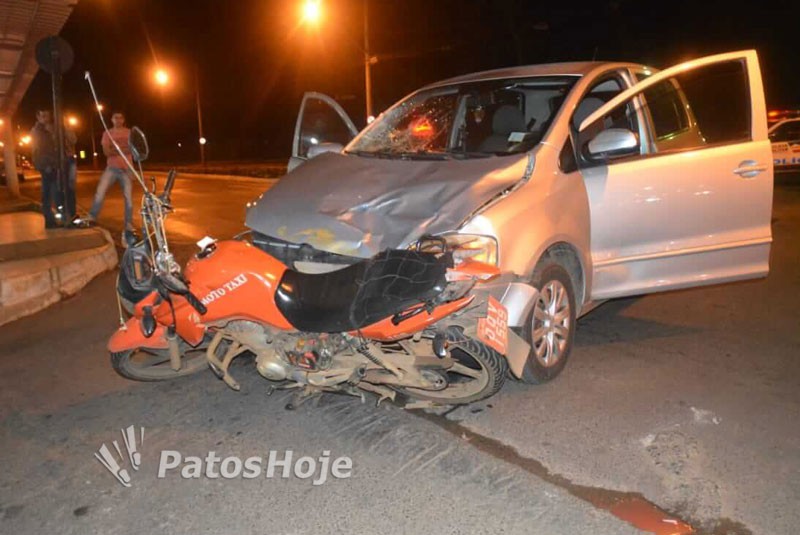 Um mototaxista precisou ser levado às pressas pra o Hospital Regional após se envolver em um grave acidente de trânsito na madrugada deste Domingo (06) em Patos de Minas. Ele estava indo fazer uma corrida quando foi surpreendido por um carro. Após a batida, o capacete saiu e ele acabou batendo forte com a cabeça no chão. Marcas de sangue ficaram espalhadas na via. A Polícia Militar esteve no local e registrou a ocorrência.