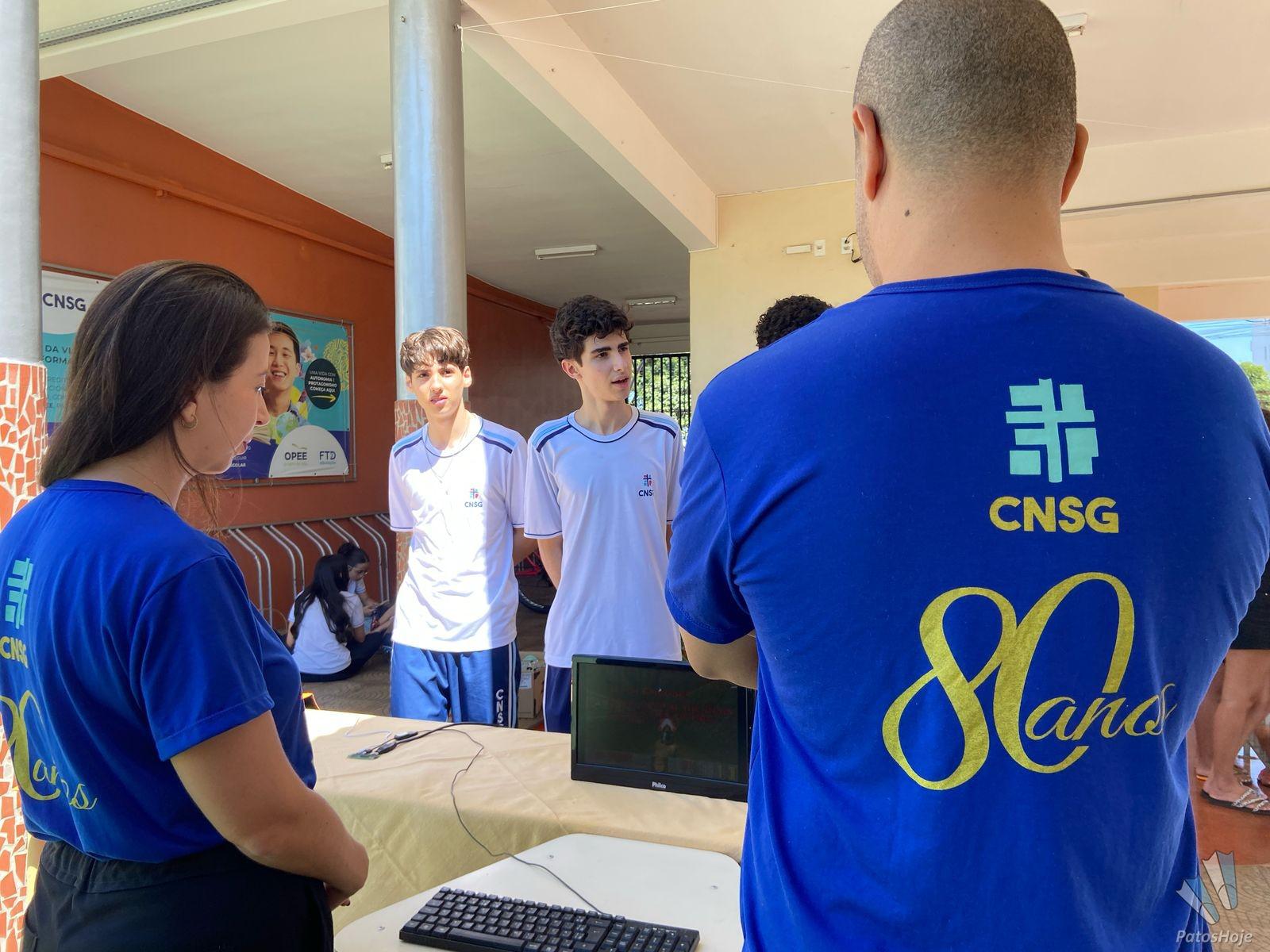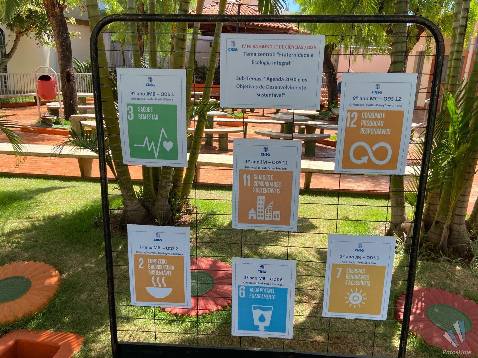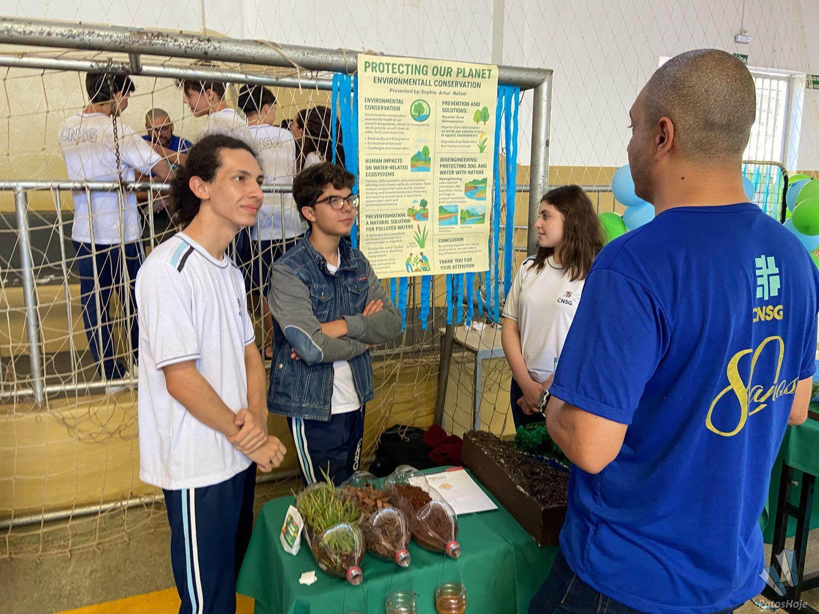 A programação do Colégio Nossa Senhora das Graças, em Patos de Minas, envolveu alunos e familiares, na manhã de sábado (12/04). Os estudantes apresentaram trabalhos com o tema: “Fraternidade e Ecologia Integral” e com subtemas focados em 11 dos objetivos sustentáveis da Agenda das Nações Unidas 2030. Além de mandarem bem em suas explicações, cada grupo apresentou também em inglês.