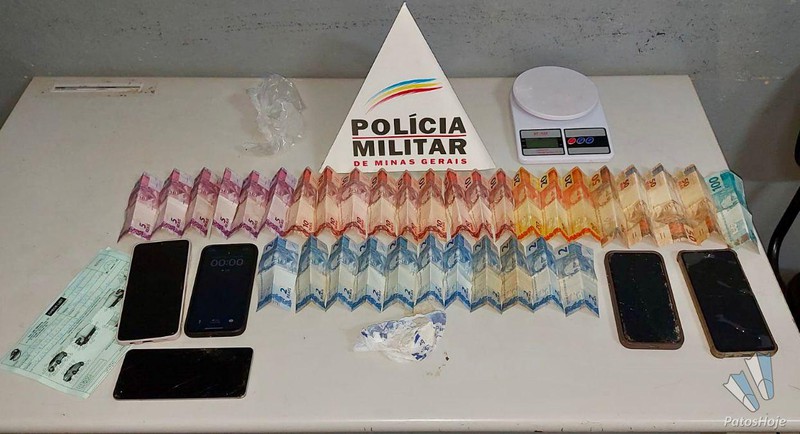 Em continuidade as diligências, os militares retornaram à residência monitorada e perceberam intensa movimentação interna, além de indícios de descarte de drogas pela descarga do vaso sanitário. Com apoio do cão de faro, foram localizados resquícios de cocaína em um banheiro, além de uma balança de precisão e embalagens usadas no preparo da droga. No interior do imóvel estavam três homens, de 41, 30 e 25 anos, que, diante dos indícios de associação para o tráfico junto ao primeiro autor, também foram presos. Com eles, foram apreendidos celulares e dinheiro em espécie.