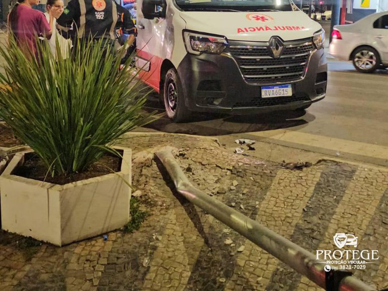 Com a batida a condutora perdeu o controle e acertou o poste de iluminação. O semáforo de pedestres que existe no cruzamento também foi arrancado. O Fiat Siena ficou com a frente destruída. A condutora reclamava de dores no peito e precisou ser socorrida pelo Samu.