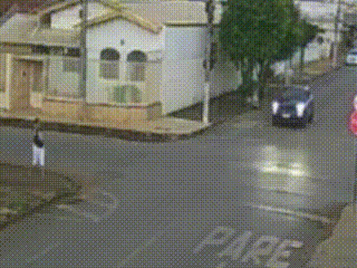 Imagens mostram que após a batida e o atropelamento, o motorista do Compass evade do local pela contramão da Rua Barão do Rio Branco, sem prestar auxílio ao condutor e passageiro do Astra e à pedestre. A Polícia Militar registrou a ocorrência, mas até o momento não conseguiu identificar o causador da batida. Qualquer informação pode ser prestada através do 190 ou 181.
