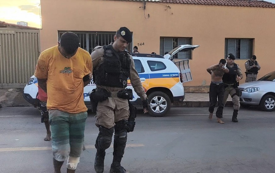 Um cerco foi montado nas imediações e os três suspeitos foram presos, quando tentavam fugir pelo meio do mato. Um deles se entregou no momento em que era atacado por um enxame de abelhas. Com eles, os policiais apreenderam uma pistola 9mm carregada com diversas munições e o carro clonado.