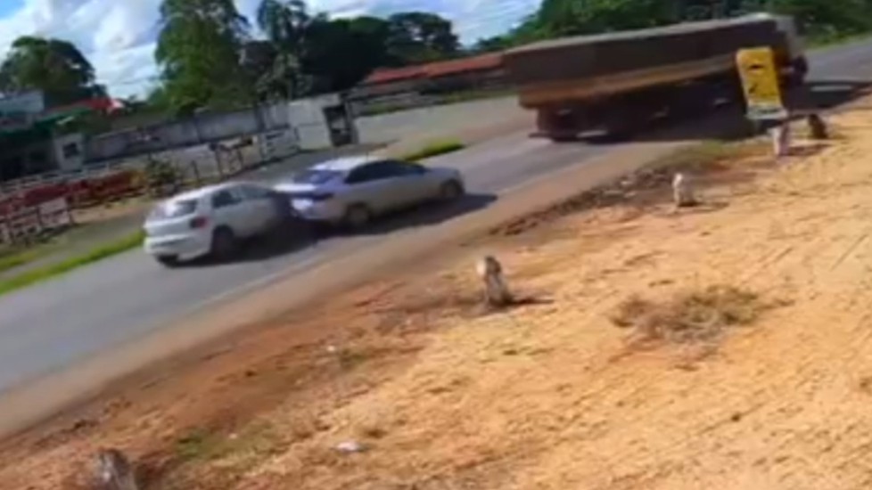 Vídeo mostra motorista sem freio batendo violentamente na traseira de veículo na BR 352; veja