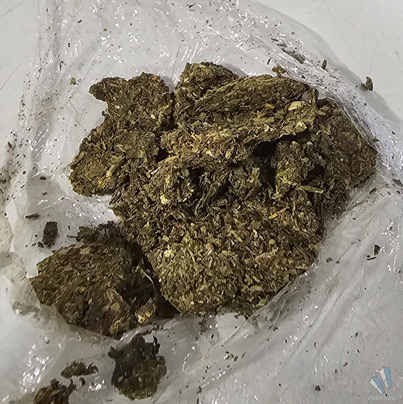 Durante a busca pessoal, foram encontrados R$ 62,00 em dinheiro. Com um dos usuários, foi localizado um cachimbo artesanal e palha de aço, utilizados para o consumo de crack. O cão de detecção, conduzido por policiais, indicou a presença de drogas em um sapato na estante do quarto, onde foi localizada uma bucha de substância semelhante à maconha.