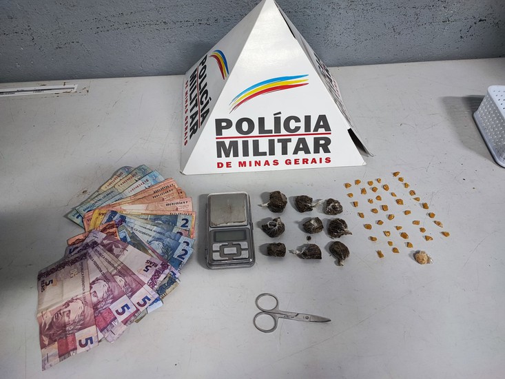 Durantes as buscas, os militares localizaram, dentro de uma jaqueta, R$183,00, em notas de pequeno valor, o que, segundo eles, é típico no comércio de drogas. Em outra jaqueta, os militares localizaram uma balança de precisão. Em cima do sofá, os militares encontraram nove tabletes de maconha e uma tesoura com resquícios de crack. No quintal da residência, os cães farejadores da ROCCA localizaram 41 pedras de crack.