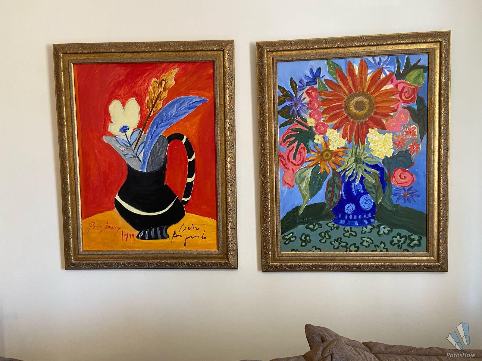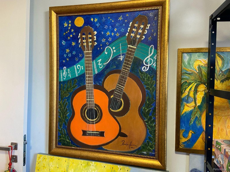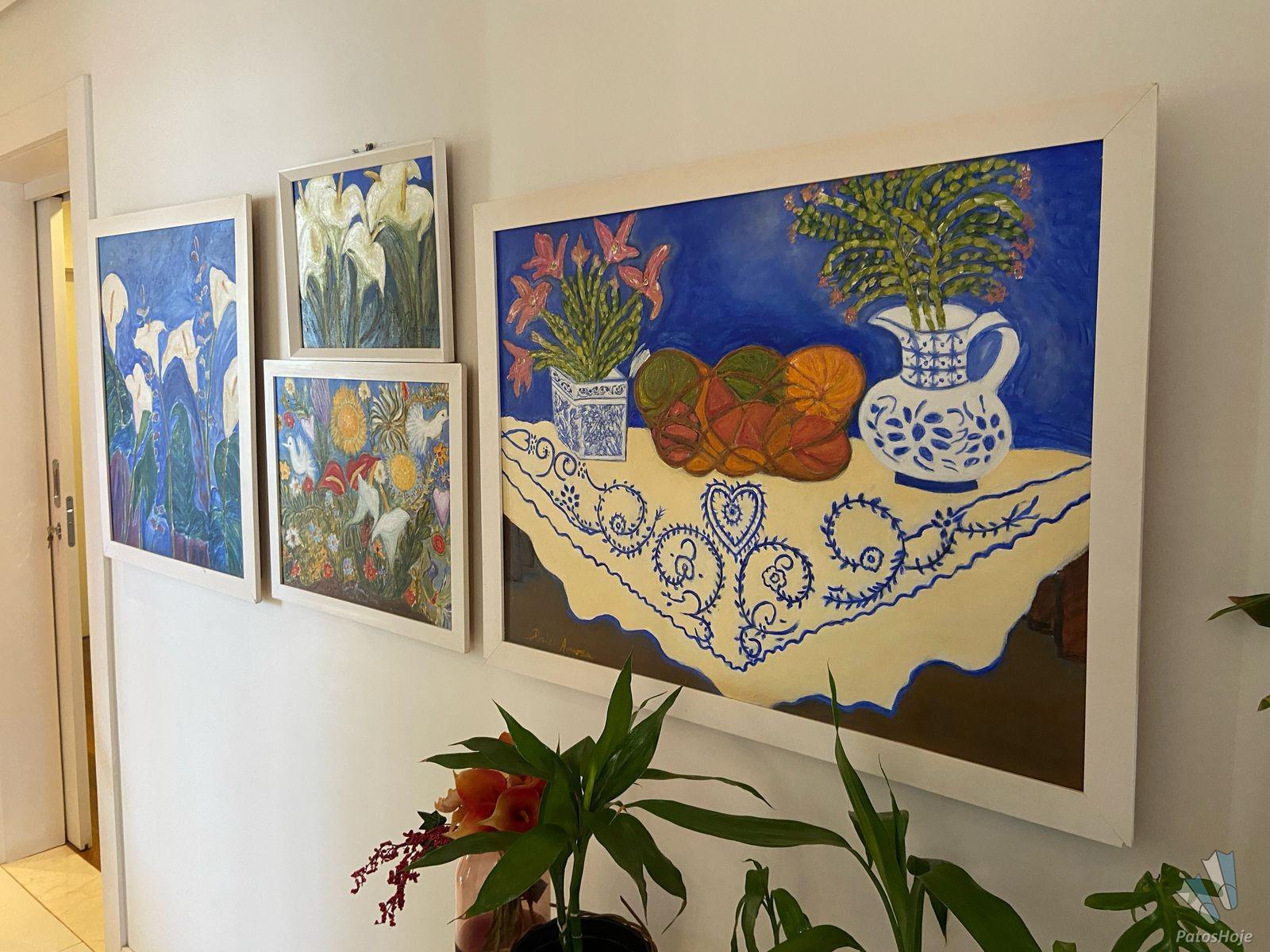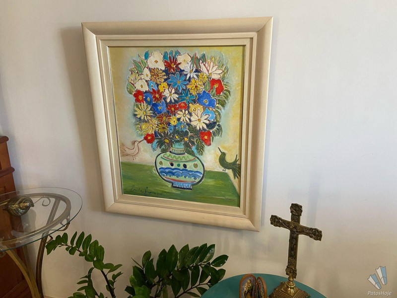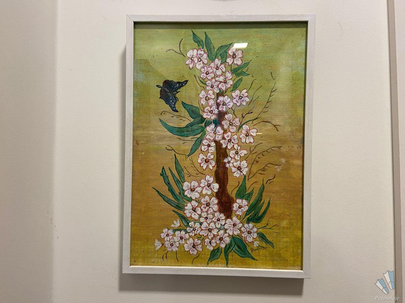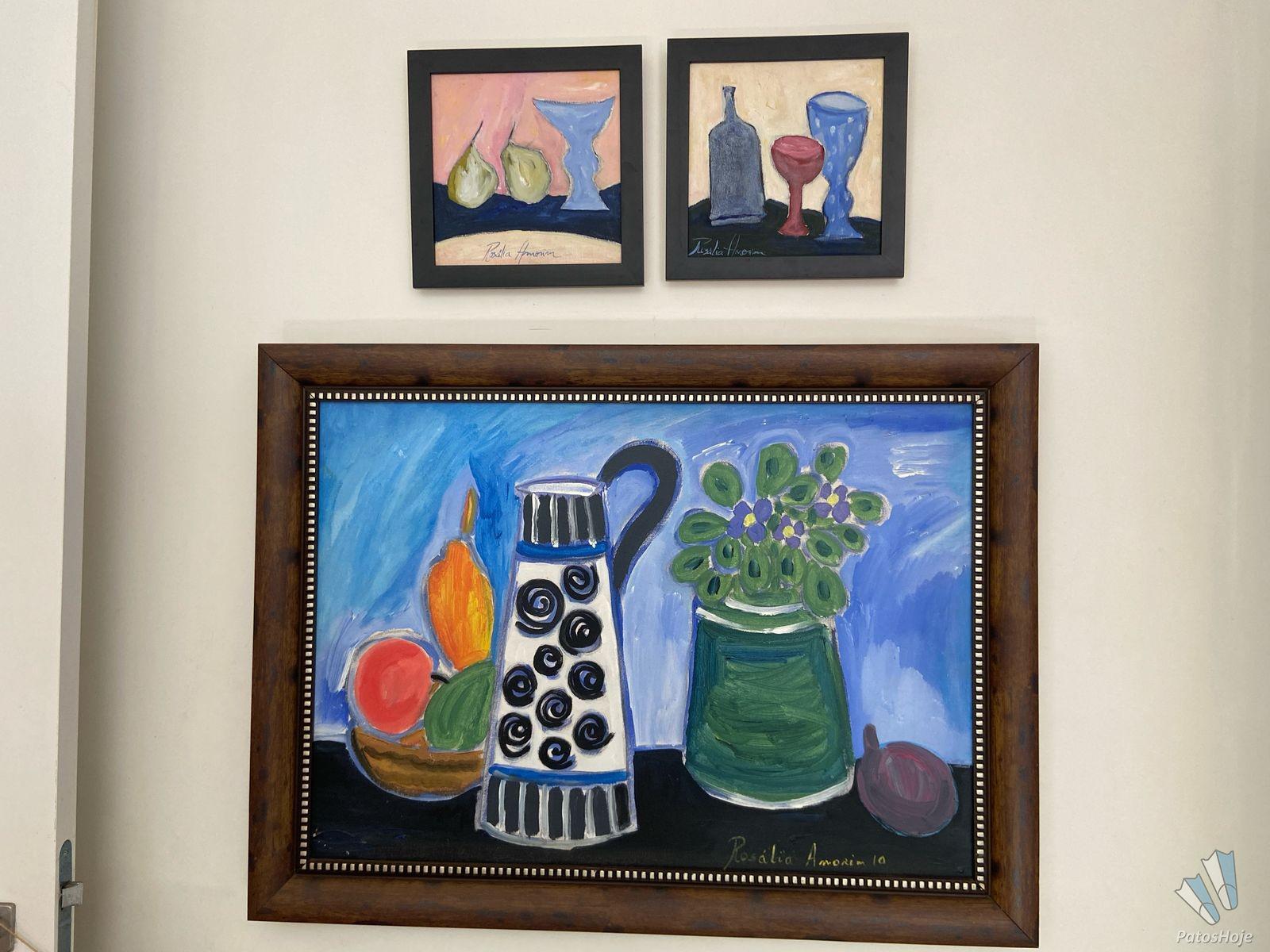 A reportagem do Patos Hoje foi até a residência da Rosália Amorim. Antes mesmo de entrar no local, nossa reportagem se deparou com um quadro, ao lado da porta. A decoração é um reflexo do que iriamos encontrar do lado de dentro. Em cada cômodo da moradia, há pelo menos uma obra da artista. Em meio a diversidade de quadros, há também obras da mãe e da avó de Rosália.