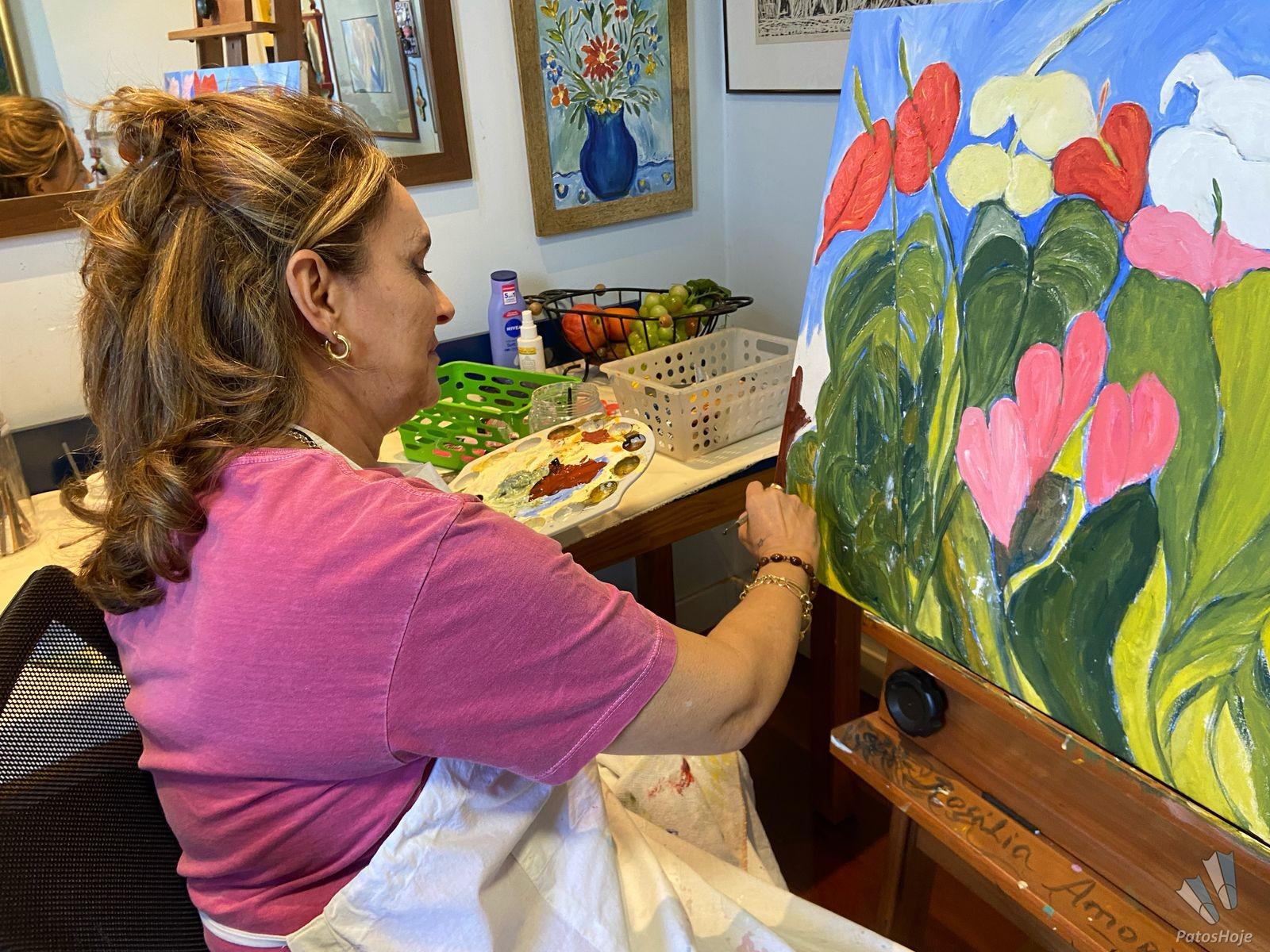 Uma artista plástica de Patos de Minas tem muitos motivos para comemorar. Neste mês, Rosália Amorim completou 40 anos de atuação, com centenas de quadros pintados. A artista se formou em 1995 pela Escola Guinard, uma unidade acadêmica da Universidade do Estado de Minas Gerais, mas sua história com a pintura começou antes. O primeiro quadro de sua autoria está datado de 1985.