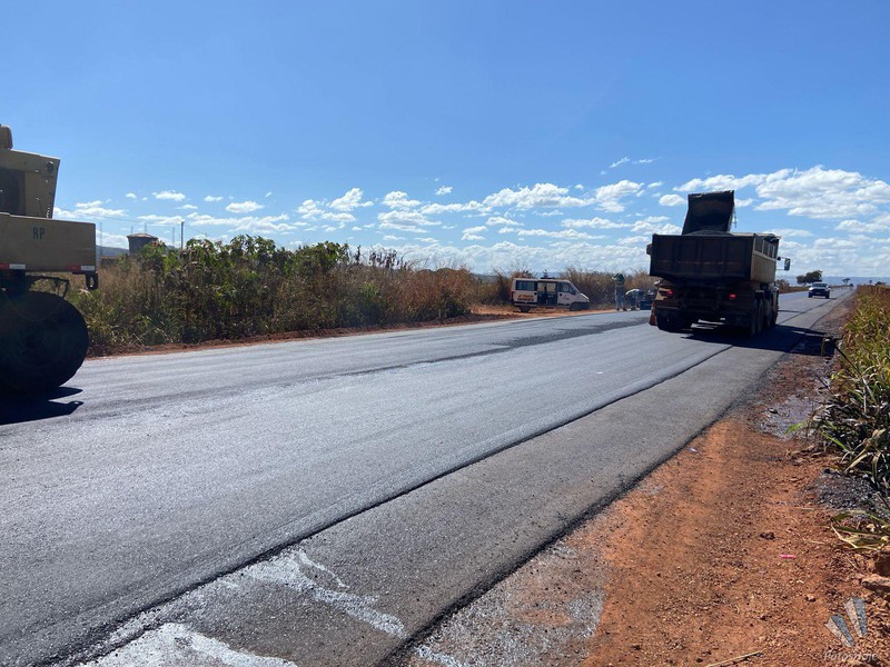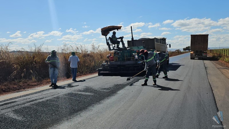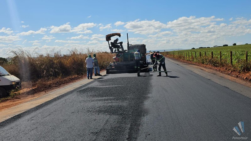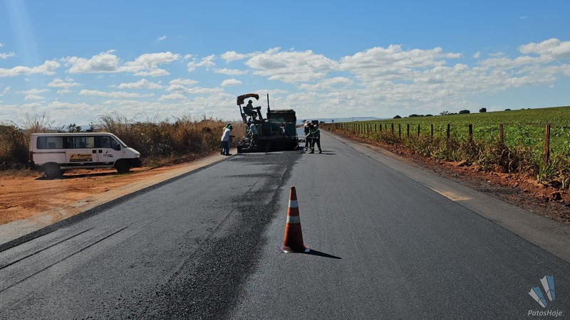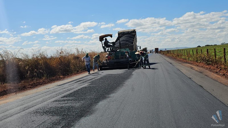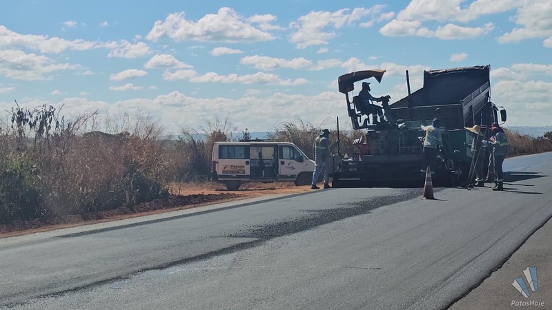 O Patos Hoje foi até a via, na manhã desta quinta-feira (22). Praticamente toda a extensão já tem pelo menos uma camada de massa asfáltica, com exceção de alguns metros próximos da ponte, localizada nas proximidades da empresa Rações Patense. Os profissionais estão na reta final da colocação da segunda massa asfáltica, de aproximadamente 2,5 cm.