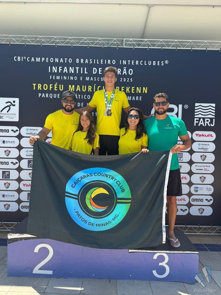 Patos de Minas é um celeiro de grandes atletas que se destacam em diversas esportes. Um deles é o Cauã Lagares e Queiroz, de 14 anos, que conquistou medalha de ouro nos 200m medley e medalha de bronze nos 200m peito, durante o Campeonato Brasileiro Interclubes Infantil de Natação de Verão, disputado na última semana no Rio de Janeiro. O atleta patense já soma mais de 100 medalhas ao longo da carreira.