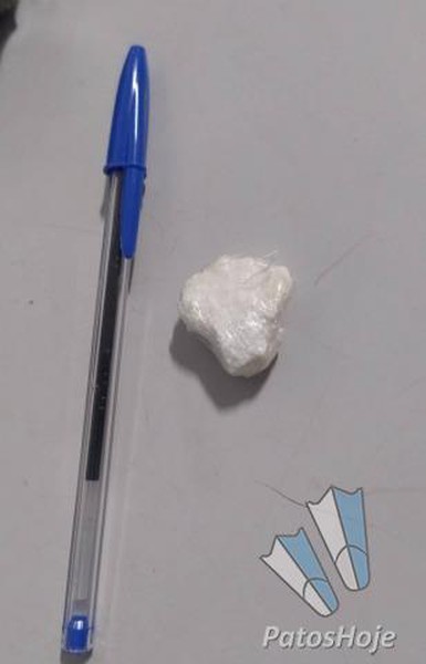 Durante busca pessoal, foi localizada no bolso do abordado uma porção de cocaína (tipo escama), acondicionada em plástico transparente. Indagado, inicialmente afirmou tratar-se de droga para consumo próprio. Em seguida, diante das informações já levantadas, confessou que mantinha em sua residência uma balança de precisão e outra porção de maconha do tipo "gold", alegando que sua companheira não tinha conhecimento dos fatos.