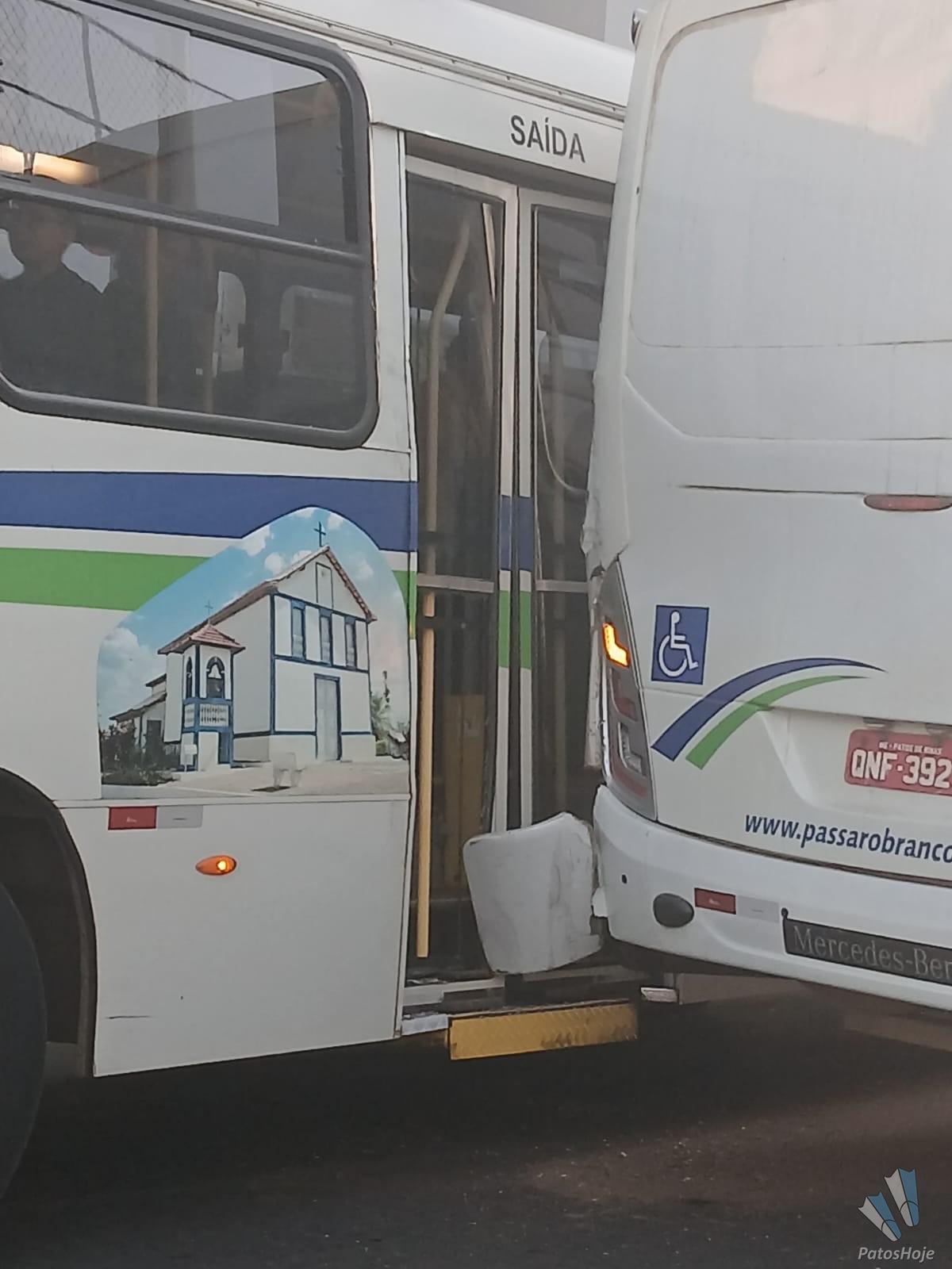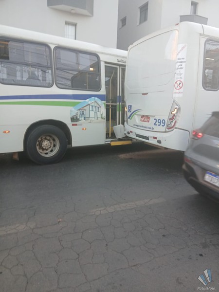 Um acidente envolvendo dois ônibus de transporte coletivo deixou uma passageira ferida, na manhã desta terça-feira (08), na rua General Osório, no Centro de Patos de Minas. A vítima foi socorrida pelo SAMU. Ambos os veículos tiveram danos após a batida.