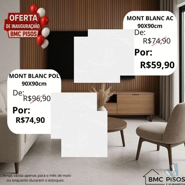 E para celebrar sua chegada, a BMC preparou ofertas especiais de inauguração que você não pode perder! Aproveite este mês para garantir piso de base vermelha a partir de R$ 19,90 e porcelanatos com preços a partir de R$ 52,90. Uma oportunidade única para elevar o nível dos seus projetos sem pesar no seu bolso.