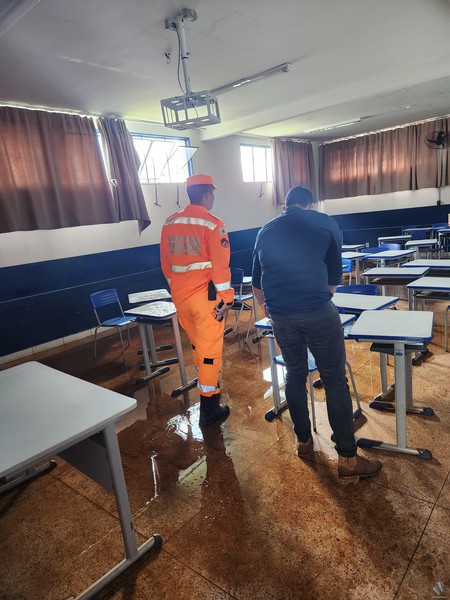 No local, foi constatado que parte da cobertura da escola foi afetada, com deslocamento de algumas telhas. A guarnição realizou vistoria técnica minuciosa e constatou que não houve danos estruturais significativos, sendo os prejuízos restritos à cobertura da edificação.