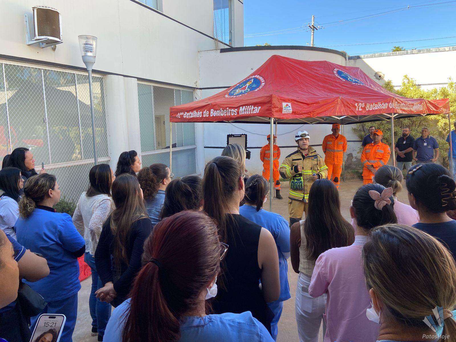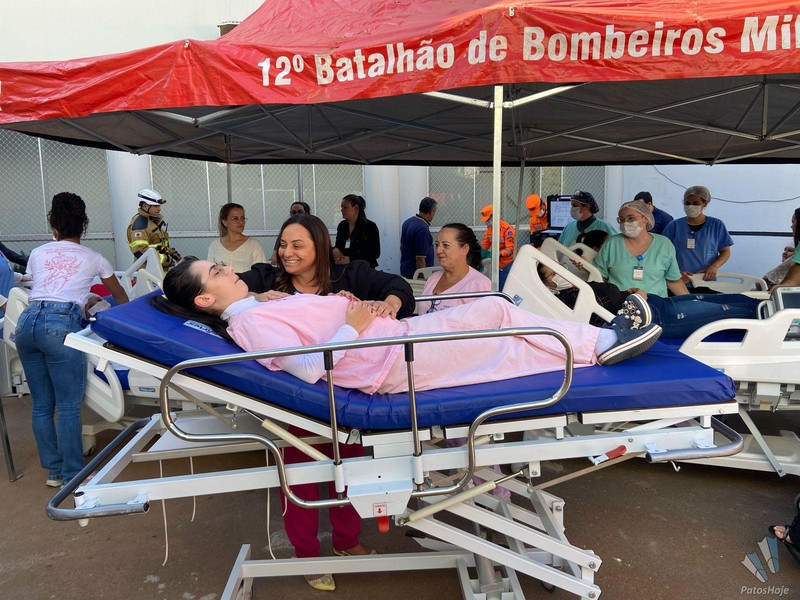 O Corpo de Bombeiros realizou, na tarde desta terça-feira (30), um simulado de incêndio na Santa Casa de Misericórdia de Patos de Minas. O objetivo, segundo a corporação, foi preparar os profissionais para uma eventual situação de risco. A Santa Casa esclareceu que o simulado não interferiu no atendimento dos pacientes e que apenas trabalhadores participaram.