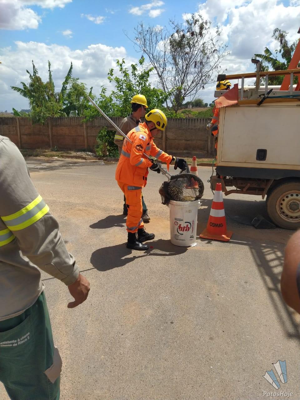 Os militares foram até o local e acionaram uma equipe da CEMIG para auxiliar no resgate. Os bombeiros subiram no veículo da companhia, que tem uma escada acoplada, e alcançaram o ouriço. Utilizando os equipamentos de resgate, os bombeiros capturaram o animal.