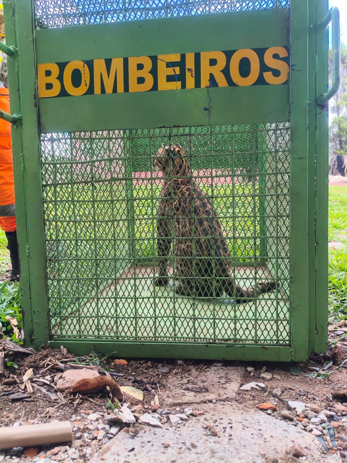 Sem ferimentos visíveis, o felino não precisou ser levado para o CETRAS. Os bombeiros conduziram a jaguatirica para uma área de mata, sendo solta em seu habitat.