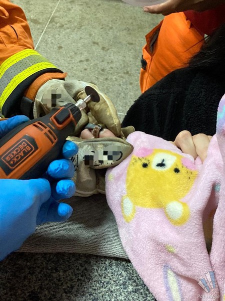 Com o uso de alicates manuais e de uma micro-retífica elétrica as partes do brinquedo foram cortadas. A parte mais tensa foi o momento do corte da peça metálica que envolvia o dedo. Esta peça, composta de metal resistente, foi cortada de forma cautelosa até o ponto em que permitiu a sua retirada com segurança do dedo da bebê.