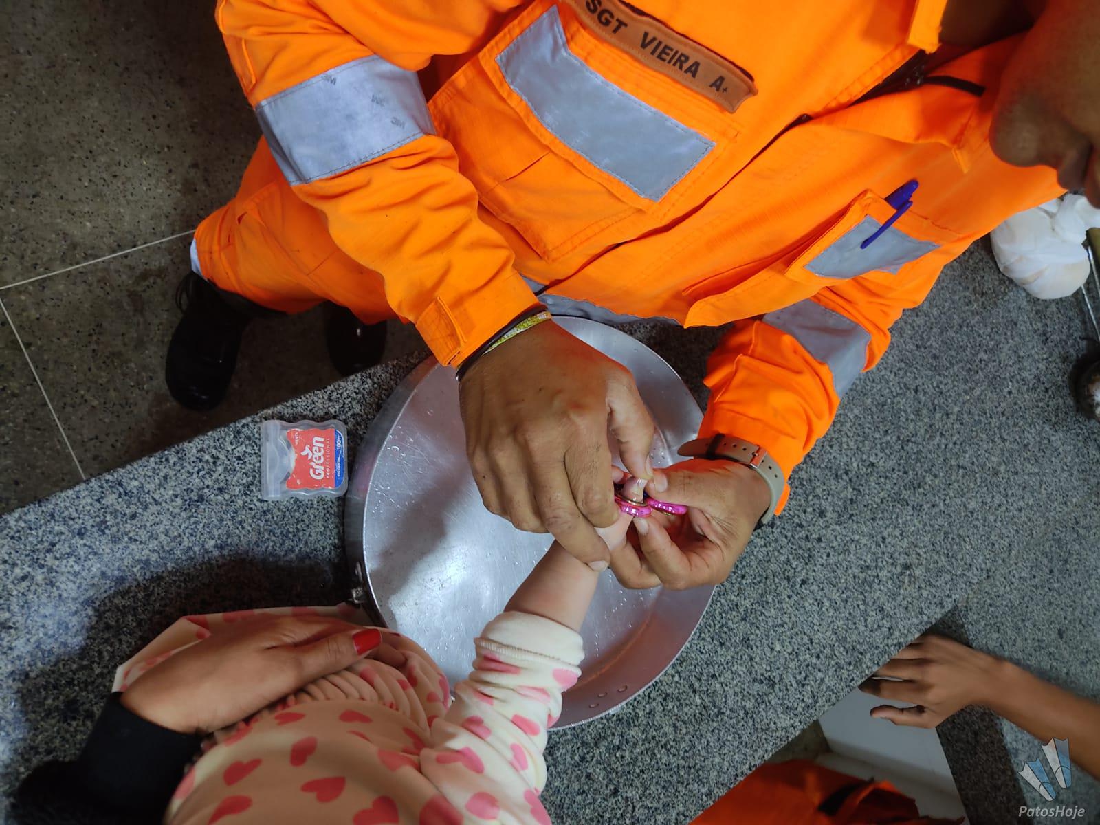 No noite deste domingo (06), por volta das 20h, o Corpo de Bombeiros teve que fazer um trabalho muito delicado para salvar uma bebezinha. A jovem mãe e a avó foram pessoalmente ao quartel do 12º BBM em Patos de Minas conduzindo a bebezinha de 05 apenas meses de idade que ficou com o dedão da mão preso em um brinquedo.