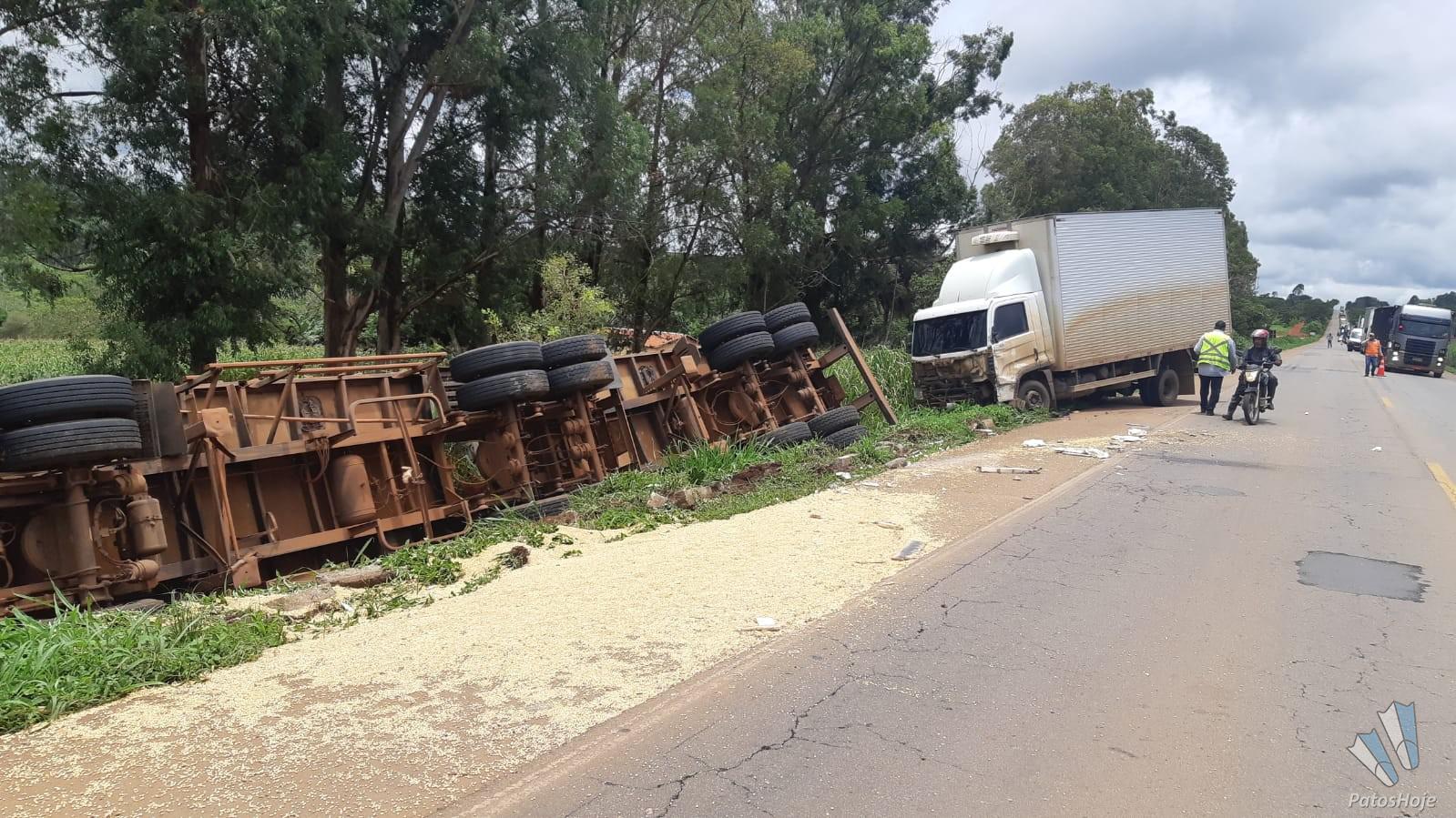 Os acidentes aconteceram nessa quinta-feira (05) no km 467 da BR 365, em Patrocínio, sentido Guimarânia. Uma carreta acabou saindo da pista e tombando. Um caminhão acabou colidindo na traseira. Os acidentes aconteceram logo após operação Pare/Siga para obras de recuperação na pavimentação.