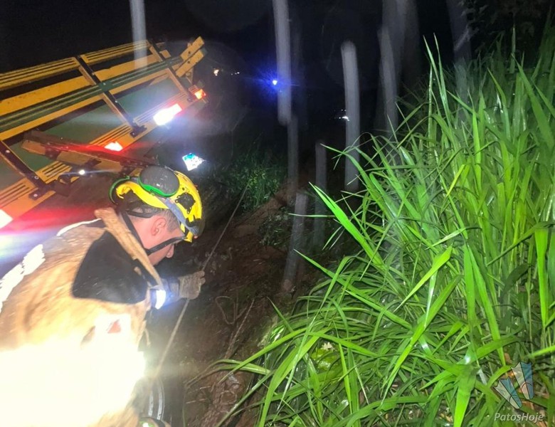 O acidente aconteceu na noite dessa sexta-feira (05), próximo ao trevo de acesso a Santana de Patos, cerca de 26 quilômetros de Patos de Minas. O caminhão saiu da pista e caiu em uma ribanceira de 30 metros. O Corpo de Bombeiros teve que usar cordas e equipamentos para fazer o resgate. O motorista e o passageiro foram encaminhados para o Hospital Regional.