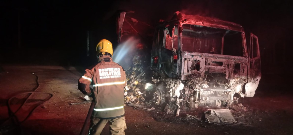Um incêndio de grandes proporções destruiu um caminhão e a carga de alimentos que ele iria transportar. O veículo estava estacionamento nas proximidades da empresa Pif Paf, localizada às margens da BR-365, no município de Patrocínio, quando pegou fogo.