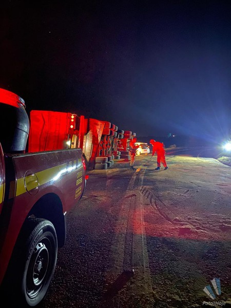 A carreta parou tombada na pista e derramou uma grande quantidade de óleo no local. O Corpo de Bombeiros atuou também para limpar o asfalto e evitar novos acidentes.