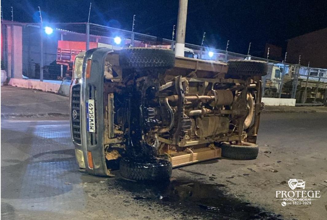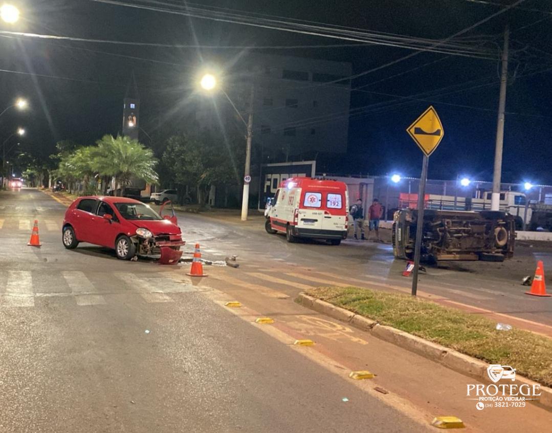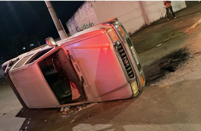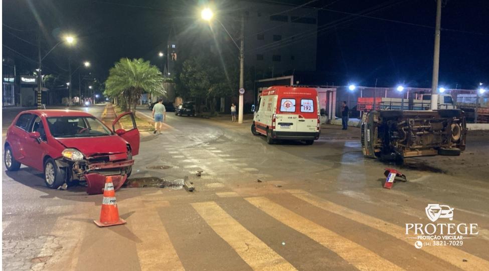 Um acidente ocorrido na noite dessa sexta-feira (21) terminou com uma pessoa ferida e outro na Delegacia por embriaguez ao volante. A batida foi tão forte que uma caminhonete Toyota Hilux foi parar tombada.