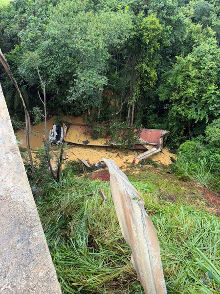 O acidente ocorreu por volta das 19h dessa terça-feira (03). As buscas pelo condutor da carreta que caiu da ponte se iniciaram por volta das 20h, e até as 8h do dia seguinte o corpo ainda não foi encontrado. Os bombeiros continuam as buscas que se concentram embaixo da carga, dentro do córrego que está cheio por conta das chuvas, e também debaixo da carreta (que só será possível após a retirada dela).
