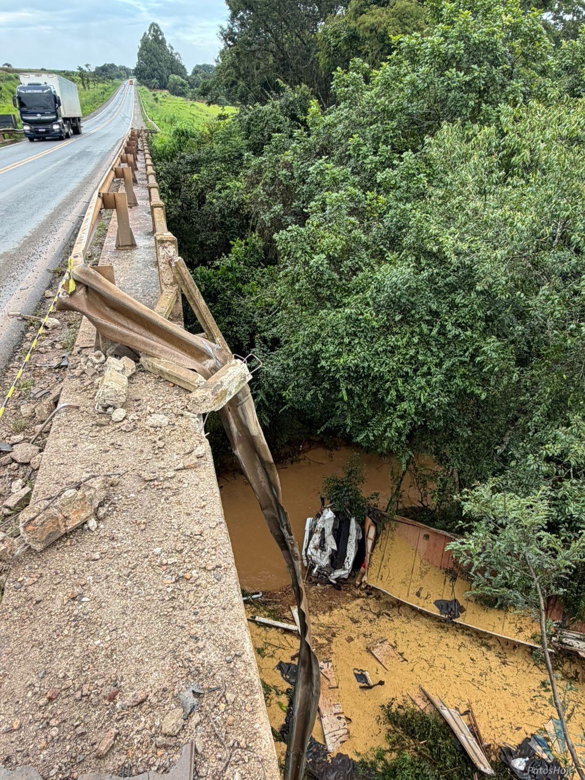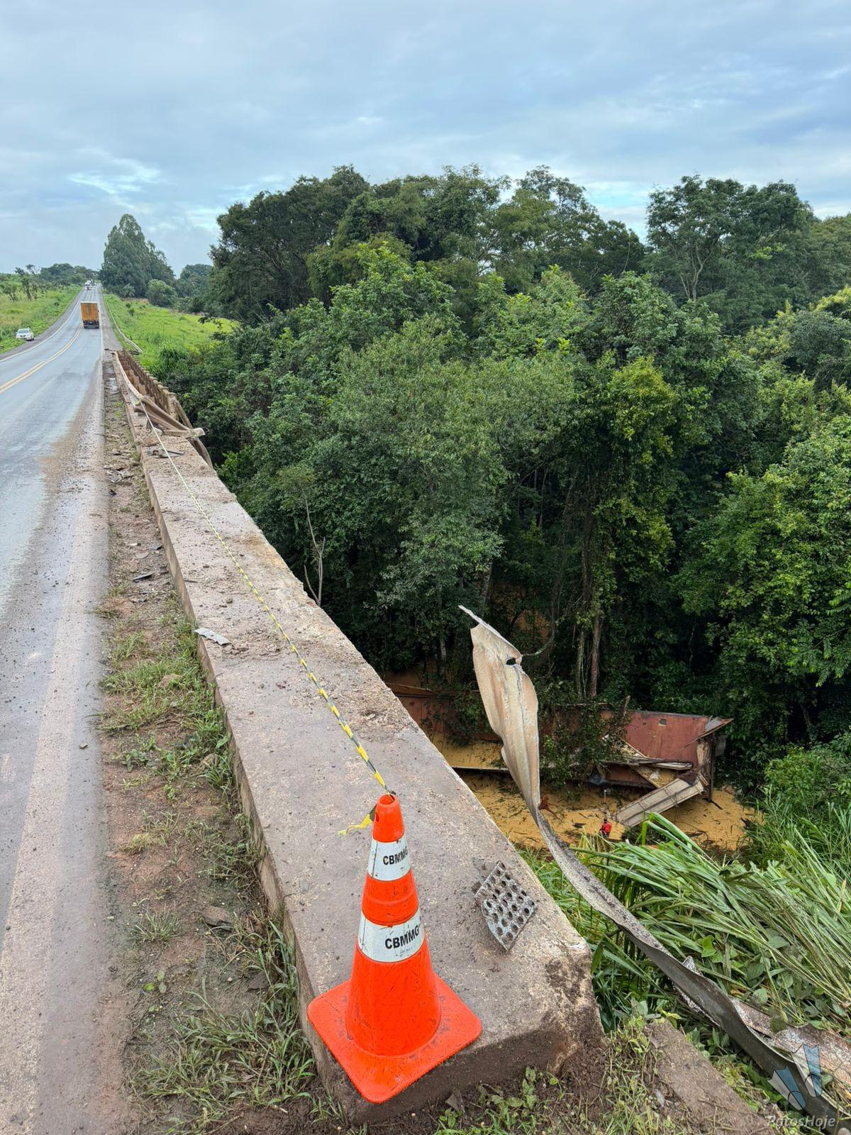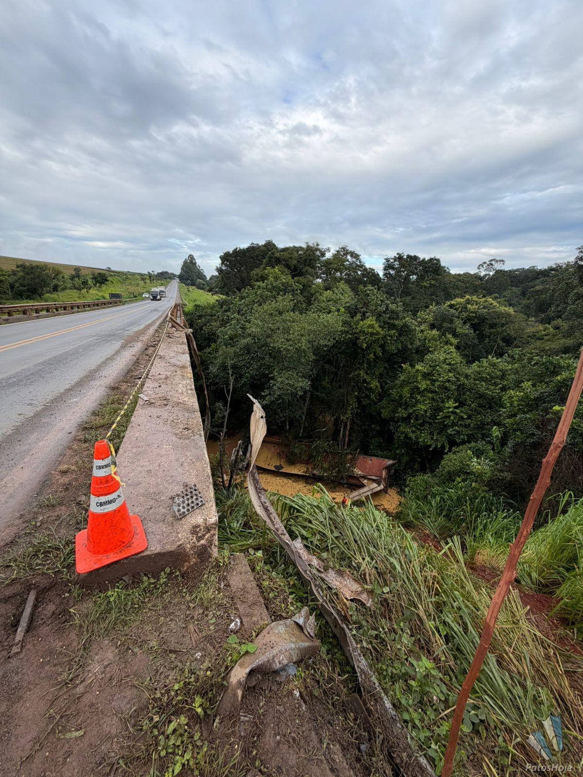 De acordo com informações da Polícia Rodoviária Federal, o acidente aconteceu no km 434 da BR 365, na ponte sobre o córrego Barreiro. Duas carretas se envolveram na batida. Um dos veículos que seguia no sentido Patos de Minas para Patrocínio colidiu com a traseira de um bitrem boiadeiro, e perdeu o controle de direção, saindo de pista, e caindo da ponte.