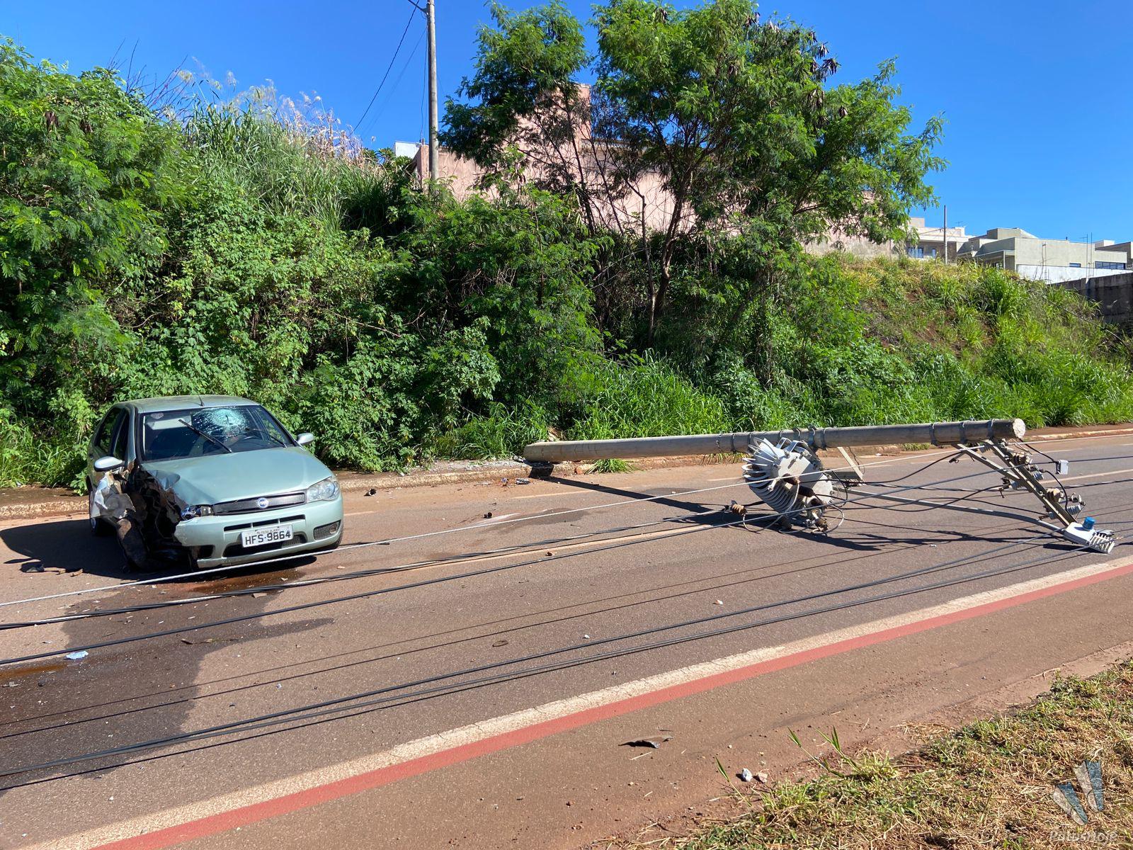 O trânsito no prolongamento da avenida Fátima Porto, no trecho próximo ao acesso ao bairro Jardim Califórnia, está interditado devido a um acidente ocorrido na madrugada deste domingo (21). Um carro bateu em um poste com transformador e acabou provocando a queda de outro dois, além do que ele bateu. O veículo ficou abandonado no local e o motorista ainda não foi encontrado.
