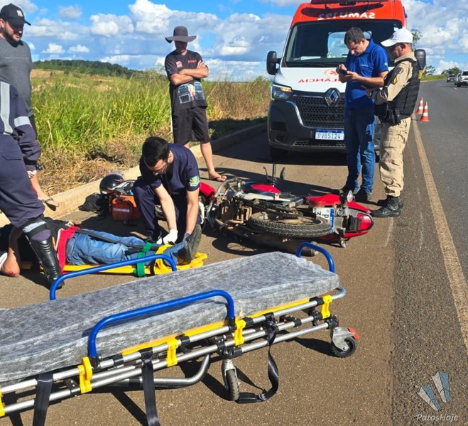 Um acidente na BR-352, próximo ao km 180, em Patos de Minas, deixou um motociclista de 69 anos ferido na tarde desta terça-feira (4). Ele precisou ser socorrido pelo Samu. O carro que teria causado o acidente fugiu do local e não foi localizado.