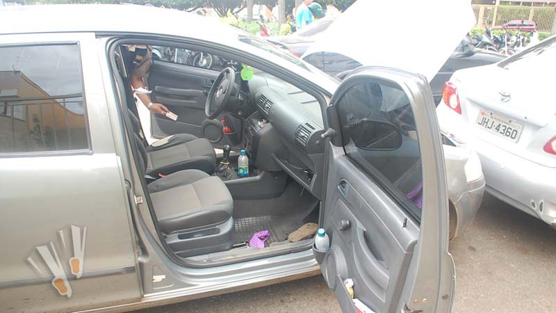 Os policiais encontraram com eles cheques de alto valor, notas promissórias, recibos e os talões de vales usados para “brindar” as vítimas dos golpes. Uma mecha de cabelo usado provavelmente para disfarce também foi apreendido. Quando questionado qual veículo que eles estavam, o homem também mentiu. Ele disse que o carro era um Fiat/Fiesta e estava na Major Gote. Na verdade, o carro é um VW/Fox e estava na Rua Tenente Bino.