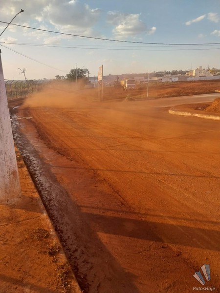 Os moradores entraram em contato com o Patos Hoje nessa terça-feira (09). Eles encaminharam fotos e vídeos quem mostram as casas e móveis cobertos de poeira. Nas ruas, com o trânsito de veículos, a grande nuvem de poeira encobre os imóveis e prejudica a respiração.