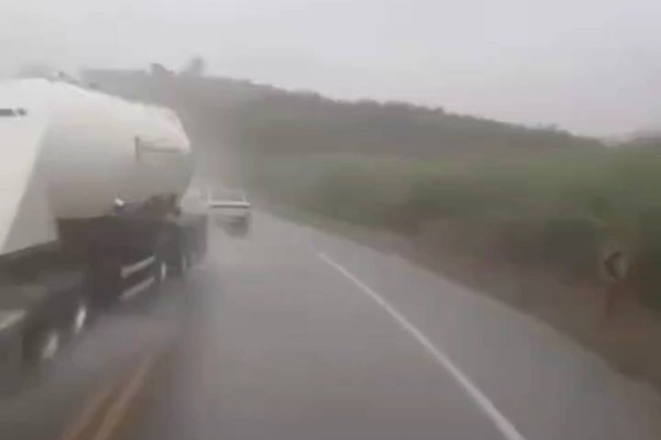 Caminhonete é arremessada e para tombada após ser atingida por Jeep na BR 352, em Arapuá