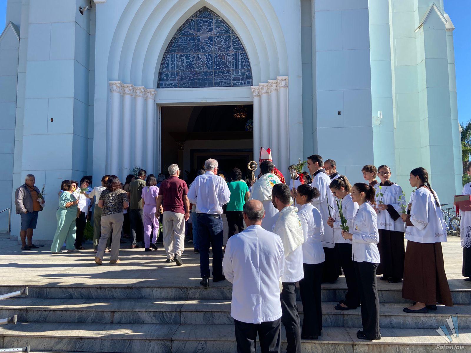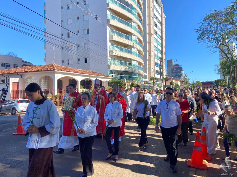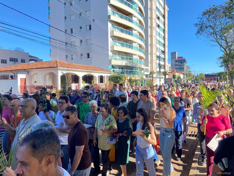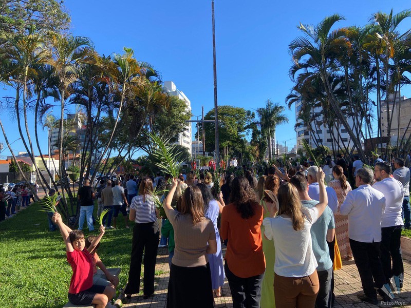 A comunidade católica celebra hoje (29) o Domingo de Ramos, data que marca o início da Semana Santa. Em Patos de Minas, centenas de fiéis participaram da celebração na Catedral de Santo Antônio, nesta manhã, que ficou completamente lotada. Os ramos serão incinerados e as cinzas serão utilizadas na próxima celebração de Quarta Feira de Cinzas.