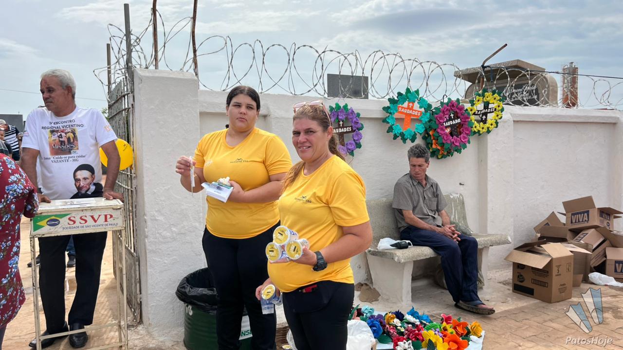 A solidariedade também se fez presente. O pessoal do Dispensário São Vicente de Paulo, como faz todos os anos, realizou a coleta de donativos. A entidade é crucial para a cidade, prestando assistência a famílias carentes e mantendo a Vila Vicentina, que cuida de dezenas de idosos.