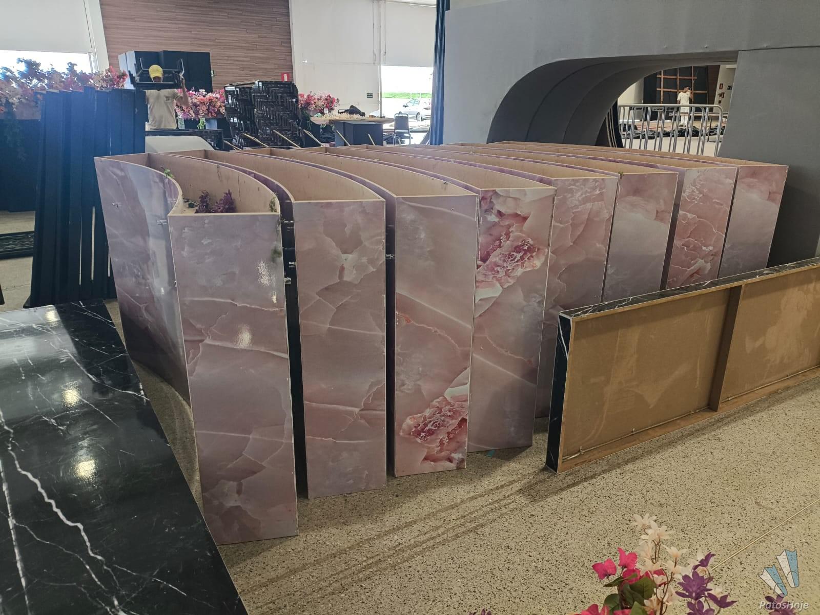 Neste sábado (27), além das bebidas, o salão já conta com as milhares de cadeiras para o evento. Aparadores para o buffet, lustres gigantes e um caminhão de flores também já chegaram ao salão. As paredes gigantes estão sendo cobertas para transformar o ambiente. O decorador Wellignton Caixeta, reconhecido por seus grandes trabalhos em toda a região, promete uma das maiores decorações já realizadas. Diversos enfeites inéditos deixarão a virada de ano realmente fascinante.