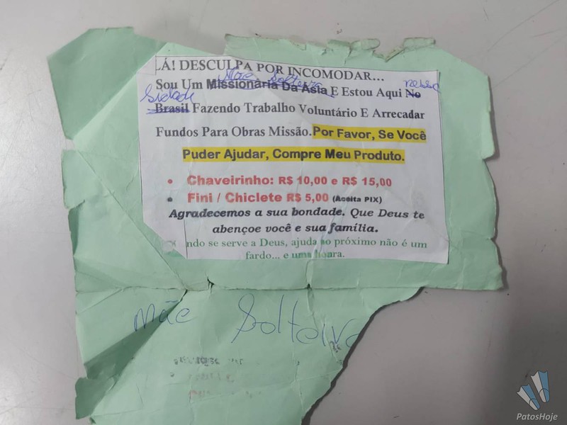 Com elas também foram encontrados bilhetes impressos utilizados para sensibilizar as pessoas e levantar recursos junto à sociedade. Entretanto, segundo a Polícia Militar, as informações contidas neles não condizem com a realidade.