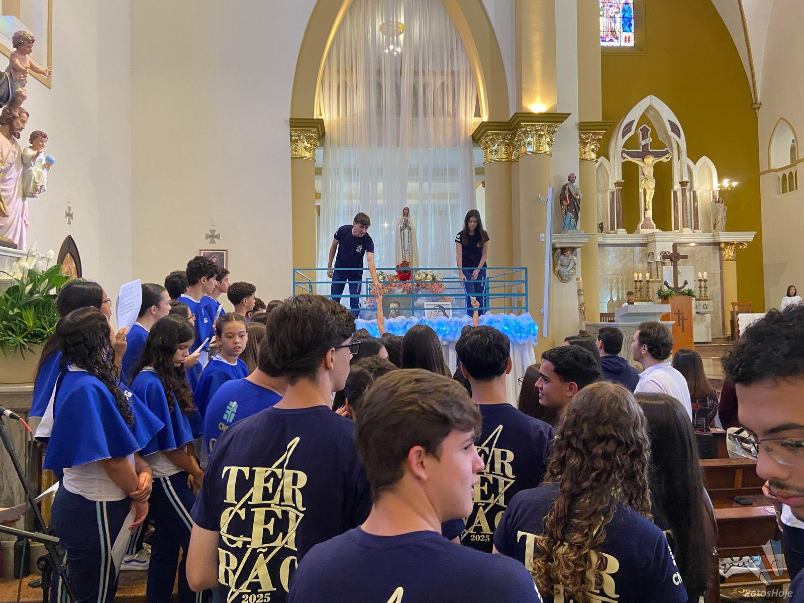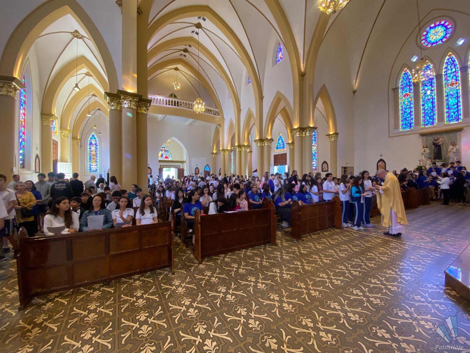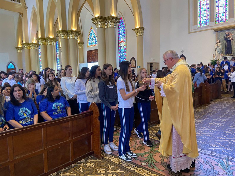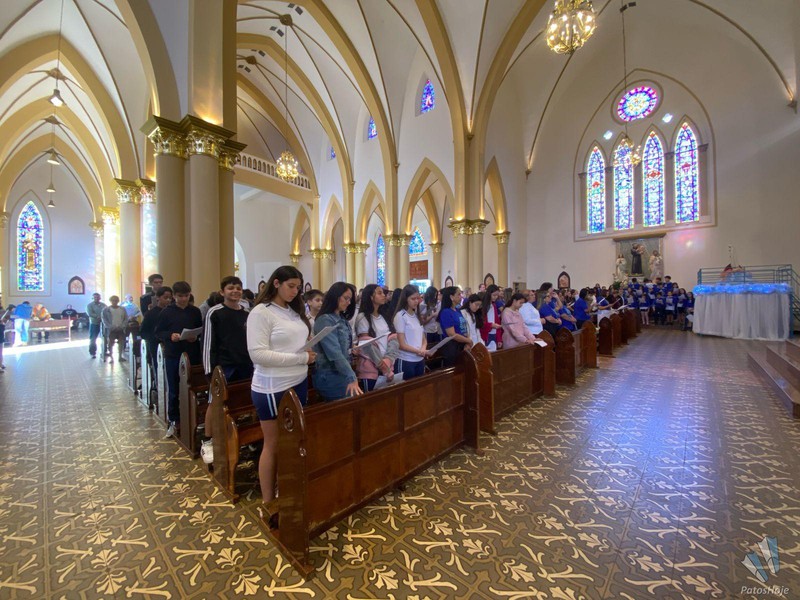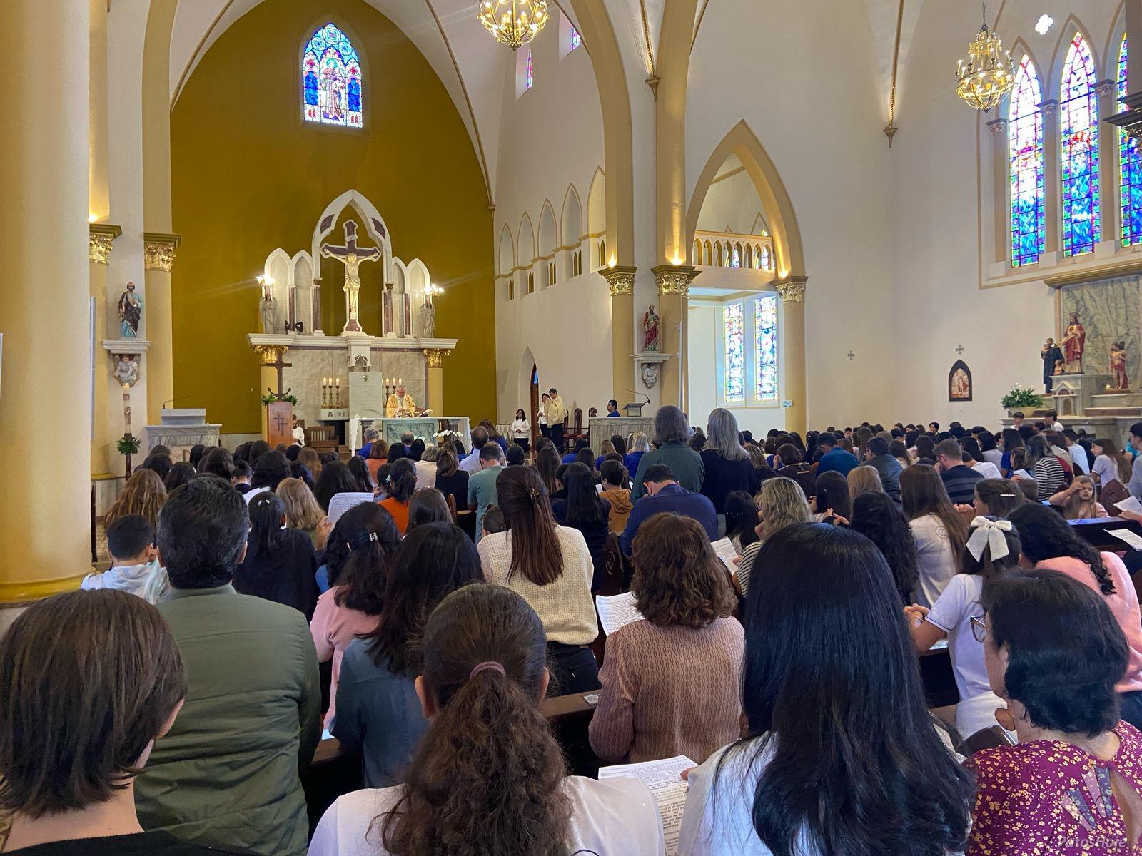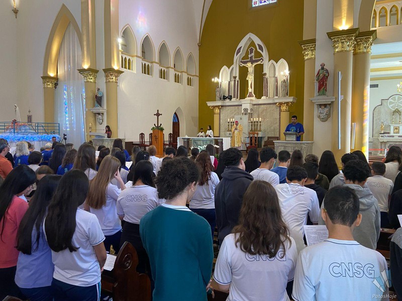 Os festejos começaram na Catedral de Santo Antônio, onde alunos, ex-alunos, docentes e autoridades participaram de uma celebração presidida pelo Bispo Dom Cláudio Nori Sturm. Durante a missa, o bispo abençoou todos os envolvidos com o CNSG. Nos momentos finais da celebração, os alunos, em um lindo gesto, levaram flores para Nossa Senhora e ao final posicionaram o manto sobre ela, seguido de uma chuva de pétalas de flores. O coral, composto por alunos do CNSG, deixou o momento ainda mais bonito.
