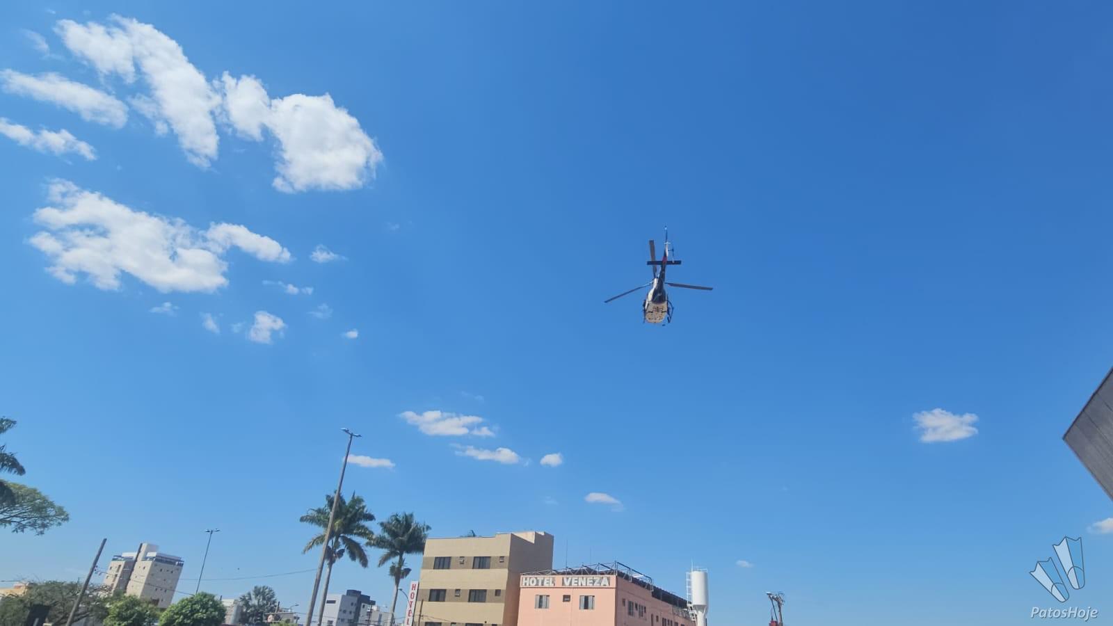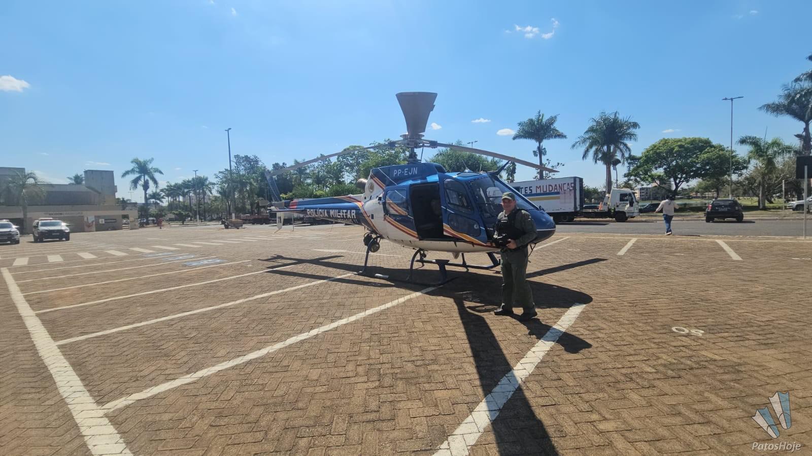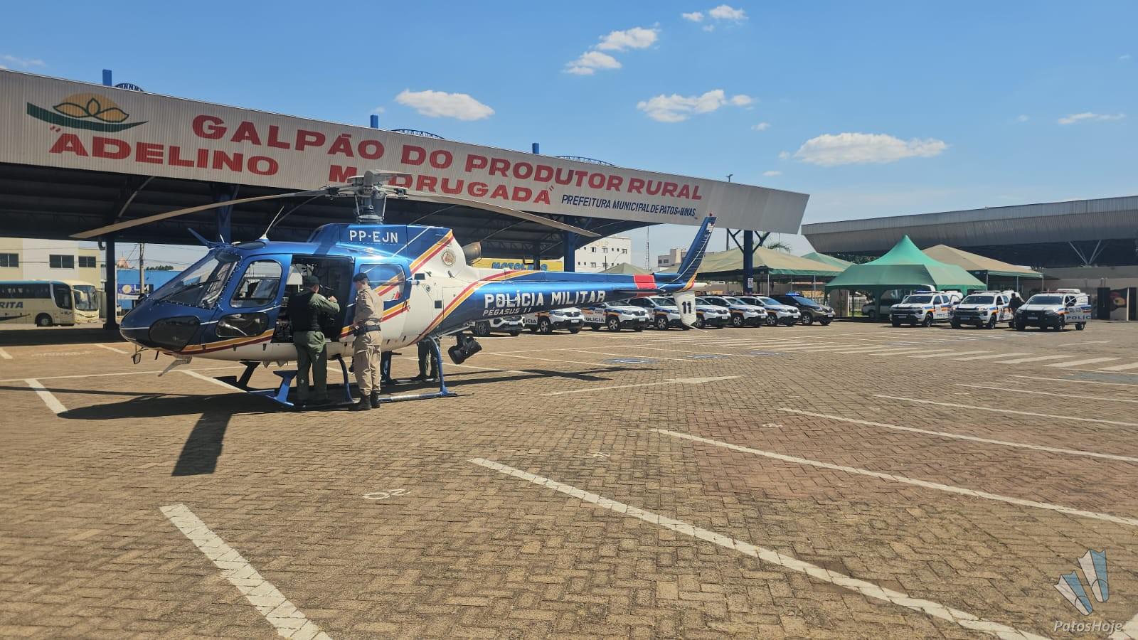 A operação contou com o reforço de uma aeronave da PMMG, que fez pousos e sobrevoos em pontos previamente definidos. Um dos pousos aconteceu por volta das 14h, no estacionamento do Galpão do Produtor, em Patos de Minas, de onde as equipes também partiram para as ações de campo.