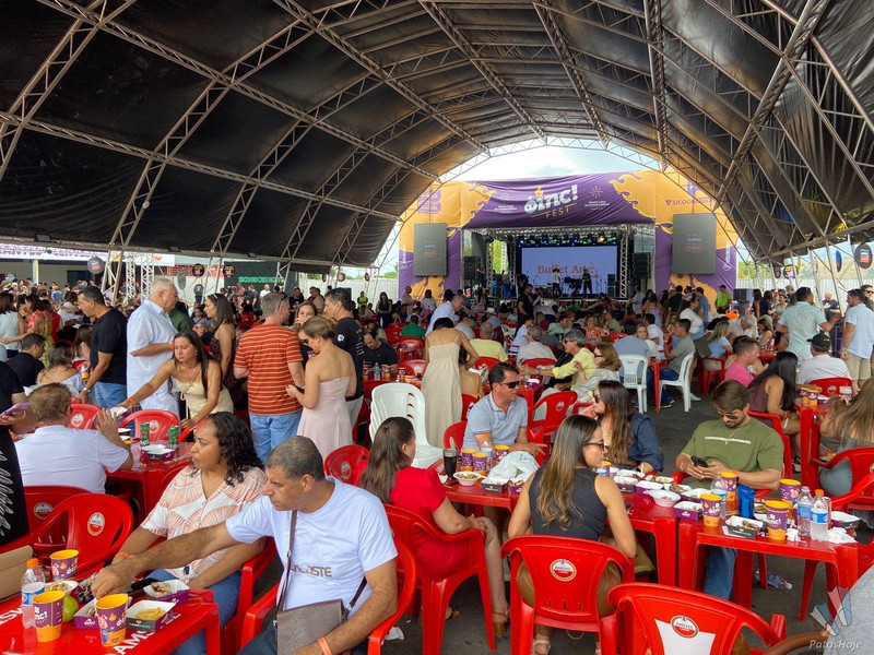 A chuva rápida que caiu em Patos de Minas no início da tarde deste sábado (08) não impediu várias famílias de participarem da Oinc Fest, no Parque de Exposições Sebastião Alves do Nascimento. São mais de 10 cortes de carnes suínas servidas para o público até às 20h. A organização informou que mais de 1.500 ingressos foram vendidos, até o início da tarde. Todo o dinheiro arrecadado será destinado para a Santa Casa de Misericórdia.