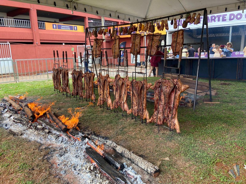 O setor mais lotado foi o gastronômico. As carnes suínas assadas ao ar livre chamaram atenção do público que fez diversos registros. Hélio Camargos, um dos idealizadores do evento, coordenou o setor gastronômico. Ele informou que são 12 cortes sendo oferecidos, um mais saboroso que o outro. Helio destacou que o segredo para ficar tão bom é gostar do que faz.