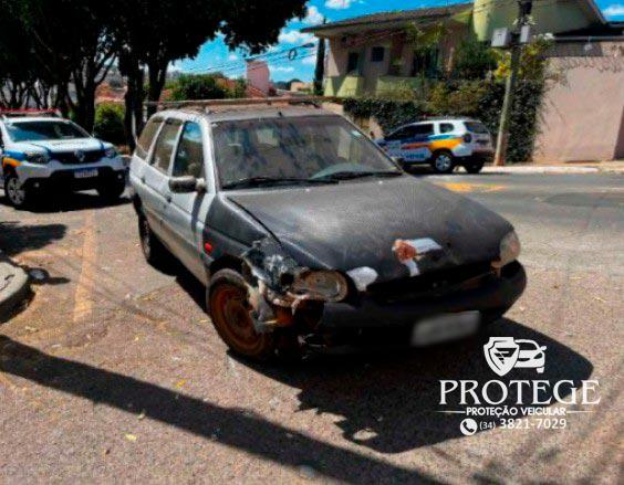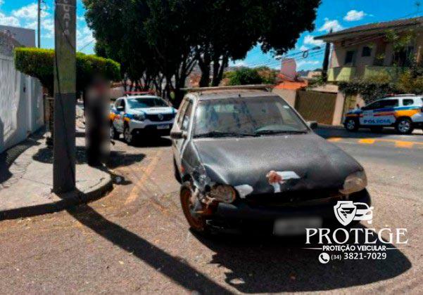 De acordo com informações da Polícia Militar, por volta das 12h15, o condutor perdeu o controle de seu Ford Escort prata e atingiu um poste da Cemig, causando o estouro do pneu dianteiro direito e danos no capô, para-choque e farol do veículo. O poste, localizado a 50 metros do local da parada do carro, apresentou arranhões superficiais. Ao chegar ao local, a guarnição o encontrou na companhia de um amigo, realizando a troca do pneu.