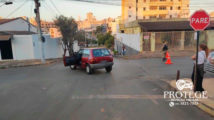 De acordo com informações da Polícia Militar, o homem de 57 anos conduzia o Fiat Uno vermelho quando teria avançado a parada obrigatória e colidido com o Jeep Compass cinza, dirigido pela condutora de 34 anos. Ela relatou que seu veículo foi atingido lateralmente e rodou, parando sobre a calçada. Testemunhas idosas confirmaram a versão da condutora, mas preferiram não se identificar no registro.
