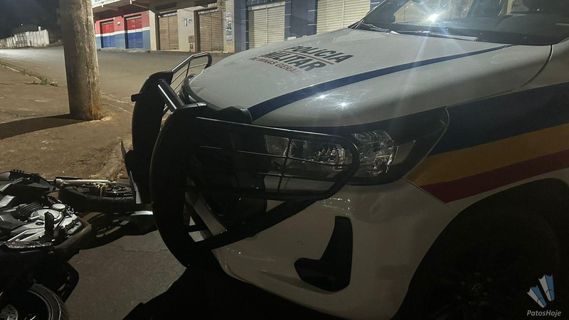 Um jovem de 18 anos, inabilitado e com sintomas de embriaguez, ficou ferido após bater em uma viatura da Polícia Militar na tarde desse domingo (17), na cidade de São Gotardo. Uma garota de 19 anos, que estava na garupa da moto também sofreu ferimentos.