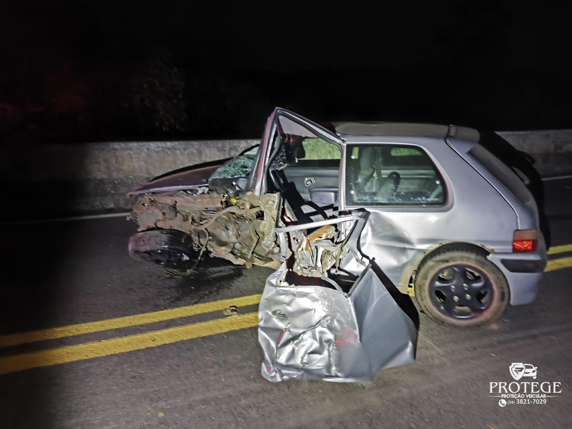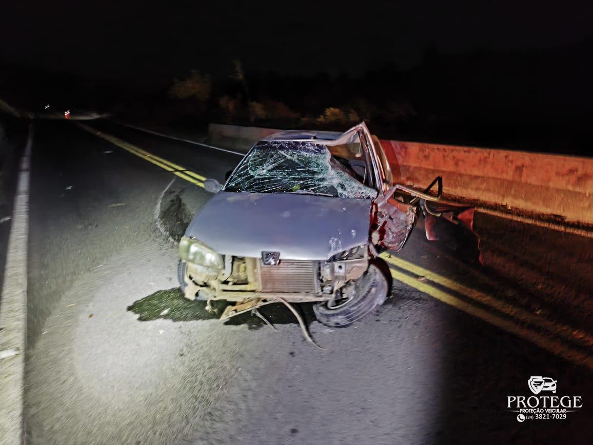 Um homem de 27 anos ficou gravemente ferido após um acidente de trânsito na madrugada deste domingo (13), na LMG-740, em Presidente Olegário. O acidente aconteceu por volta de 1h50, no km 7 da rodovia, próximo à ponte do Ribeirão Taboca.