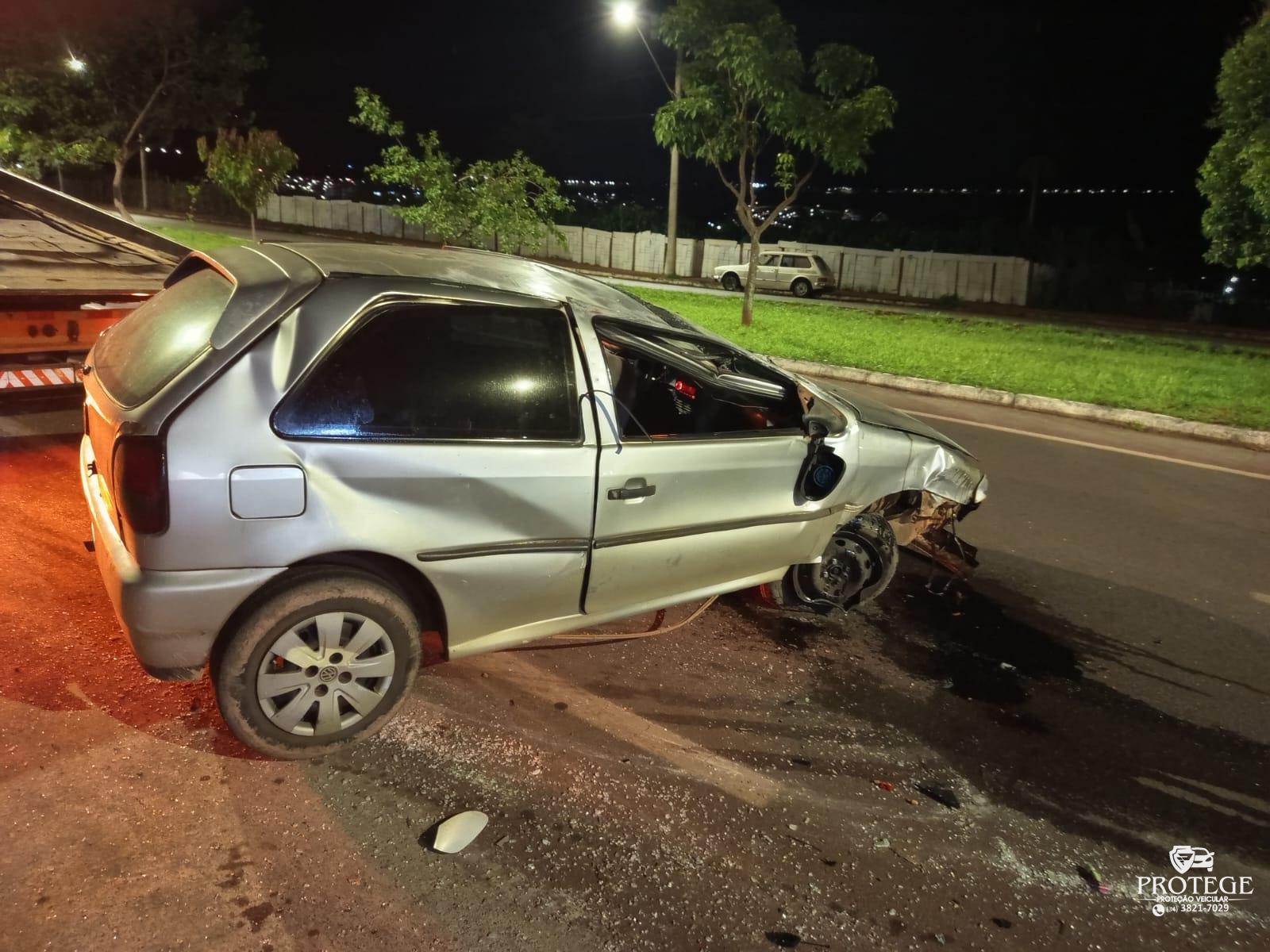 Ao chegar ao local, os militares encontraram o VW Gol com as rodas para cima. O condutor de 22 anos informou aos policiais que trafegava sozinho no veículo em direção ao centro da cidade e que não se lembrava do ocorrido. Ele disse que só retomou a consciência quando estava preso pelo cinto de segurança no interior do carro.