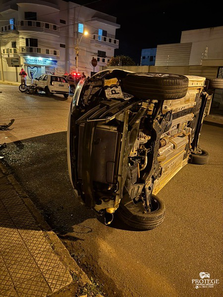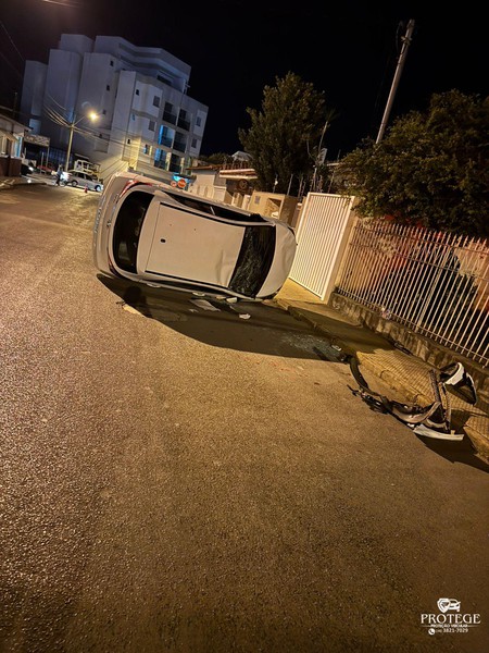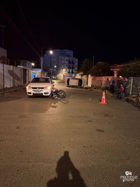 Um grave acidente de trânsito envolvendo dois veículos de passeio e uma motocicleta mobilizou equipes de resgate e a Polícia Militar no final da tarde dessa quinta-feira (05), no Centro de Carmo do Paranaíba. Duas pessoas ficaram feridas e os veículos sofreram danos consideráveis. Um deles chegou a capotar na via.